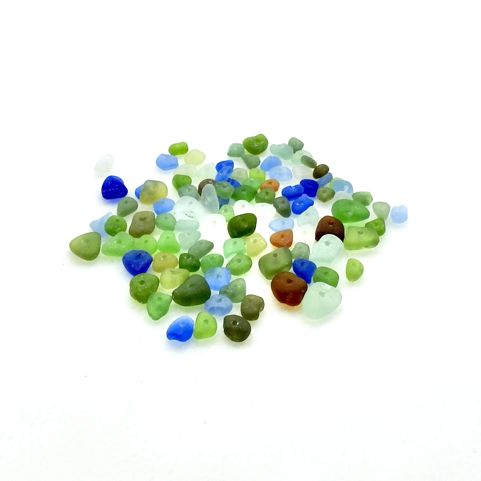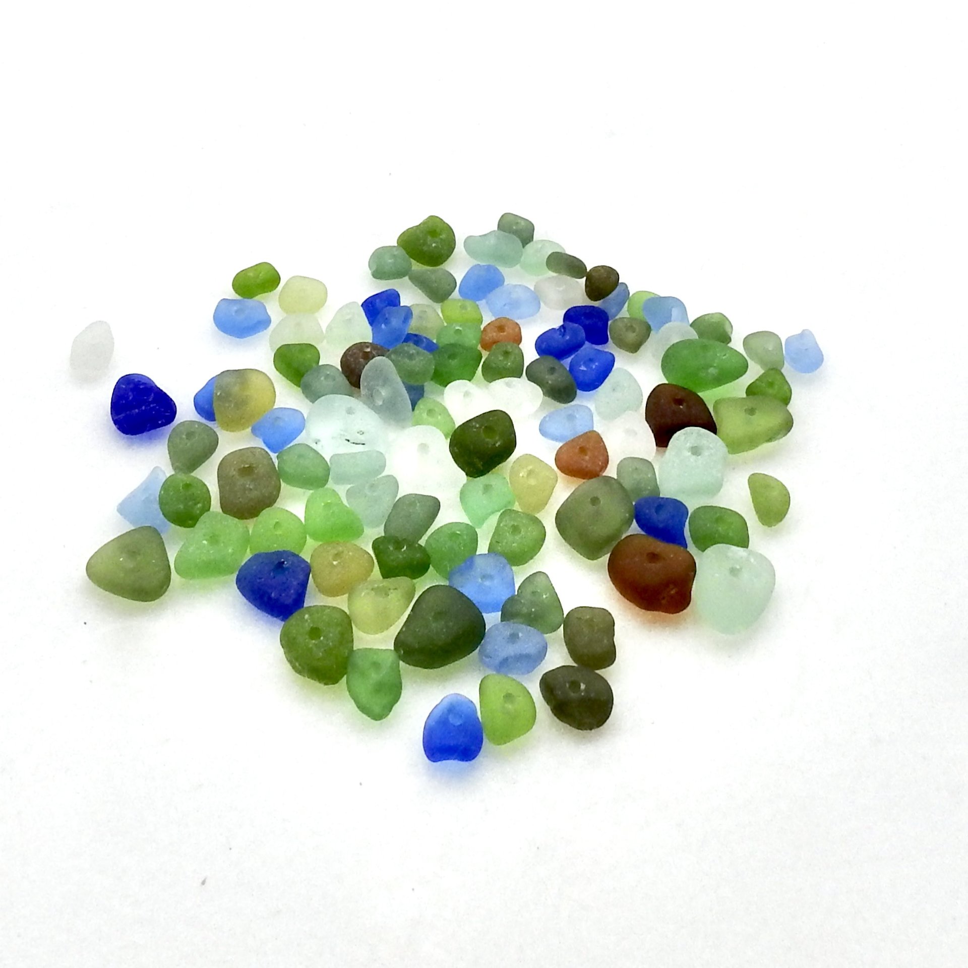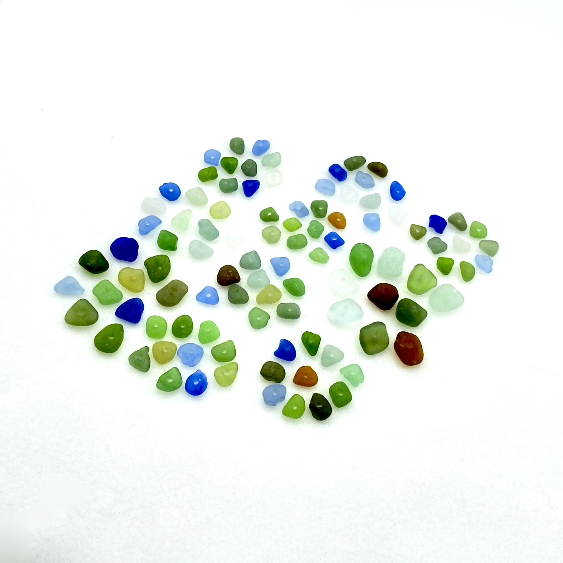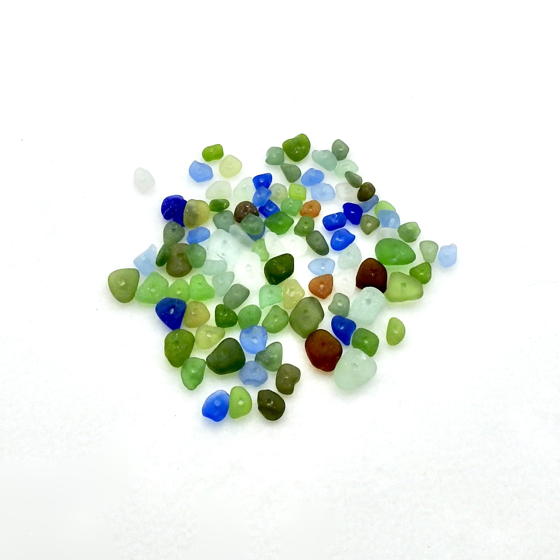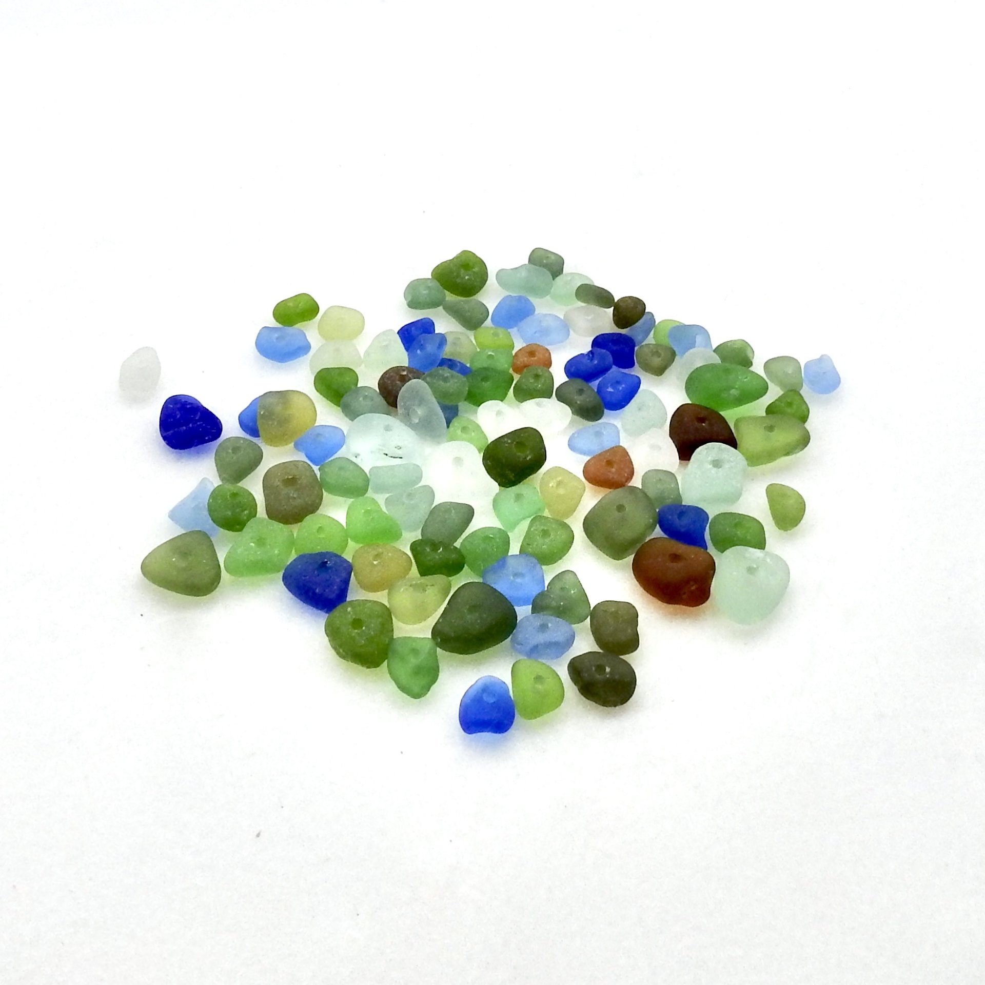 Tiny genuine sea glass beads, bulk lot of 100, with centre drilled holes for jewelry making or other DIY beach craft projects.