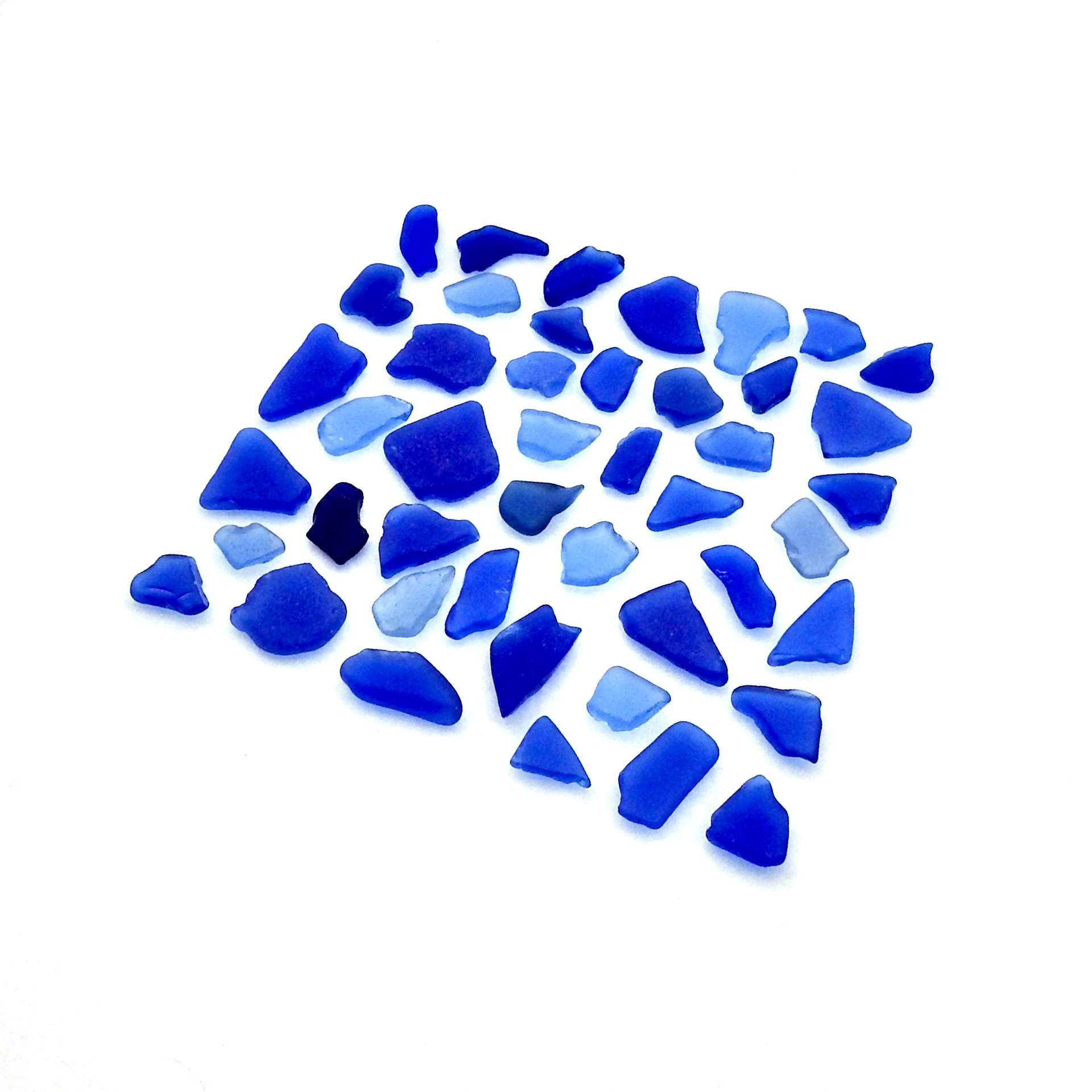 Genuine sea glass, set of 45 flat craft quality pieces for mosaics, trivets, frames, artwork or other beached themed projects. All of these pieces have shiny spots, nics or raw (not sharp) edges.