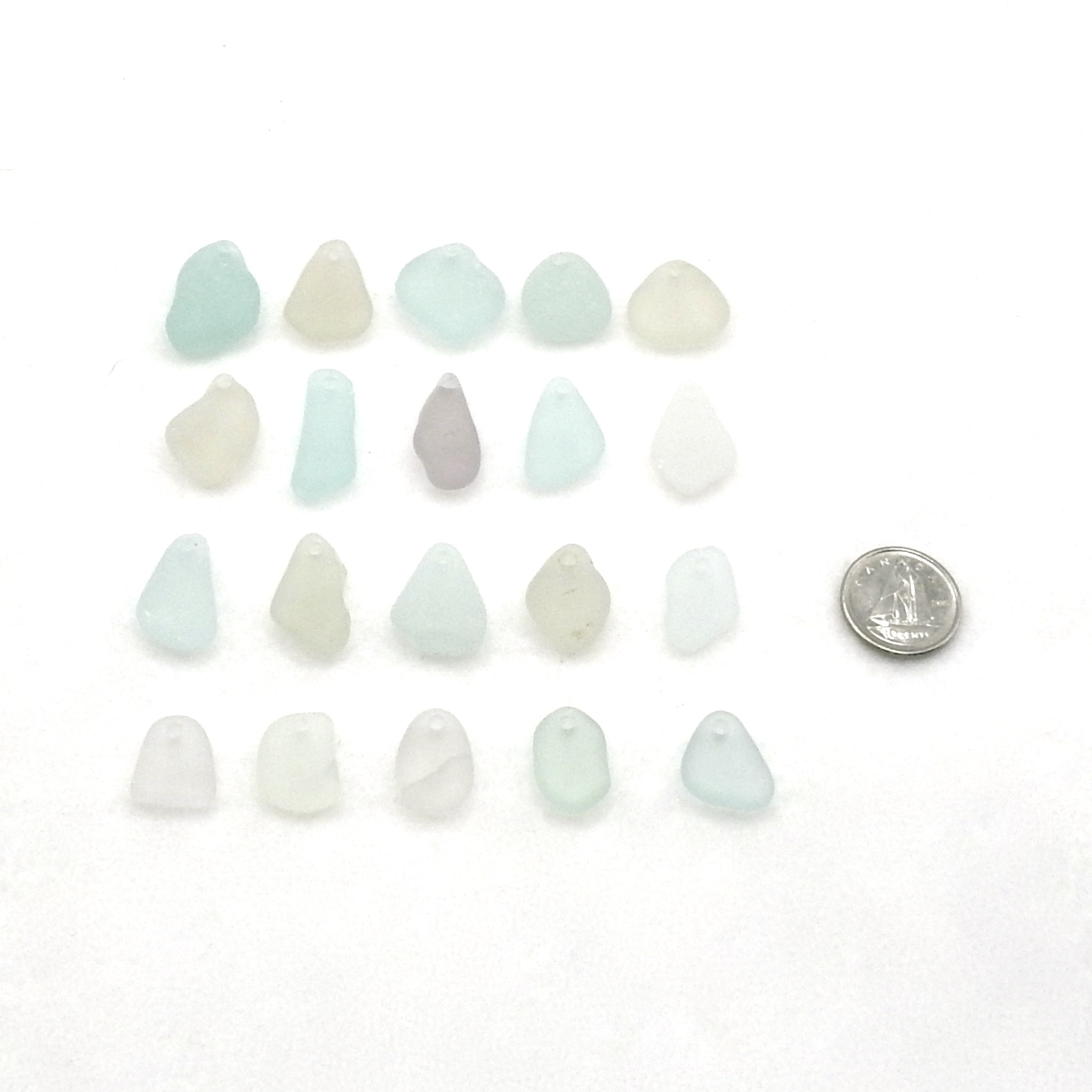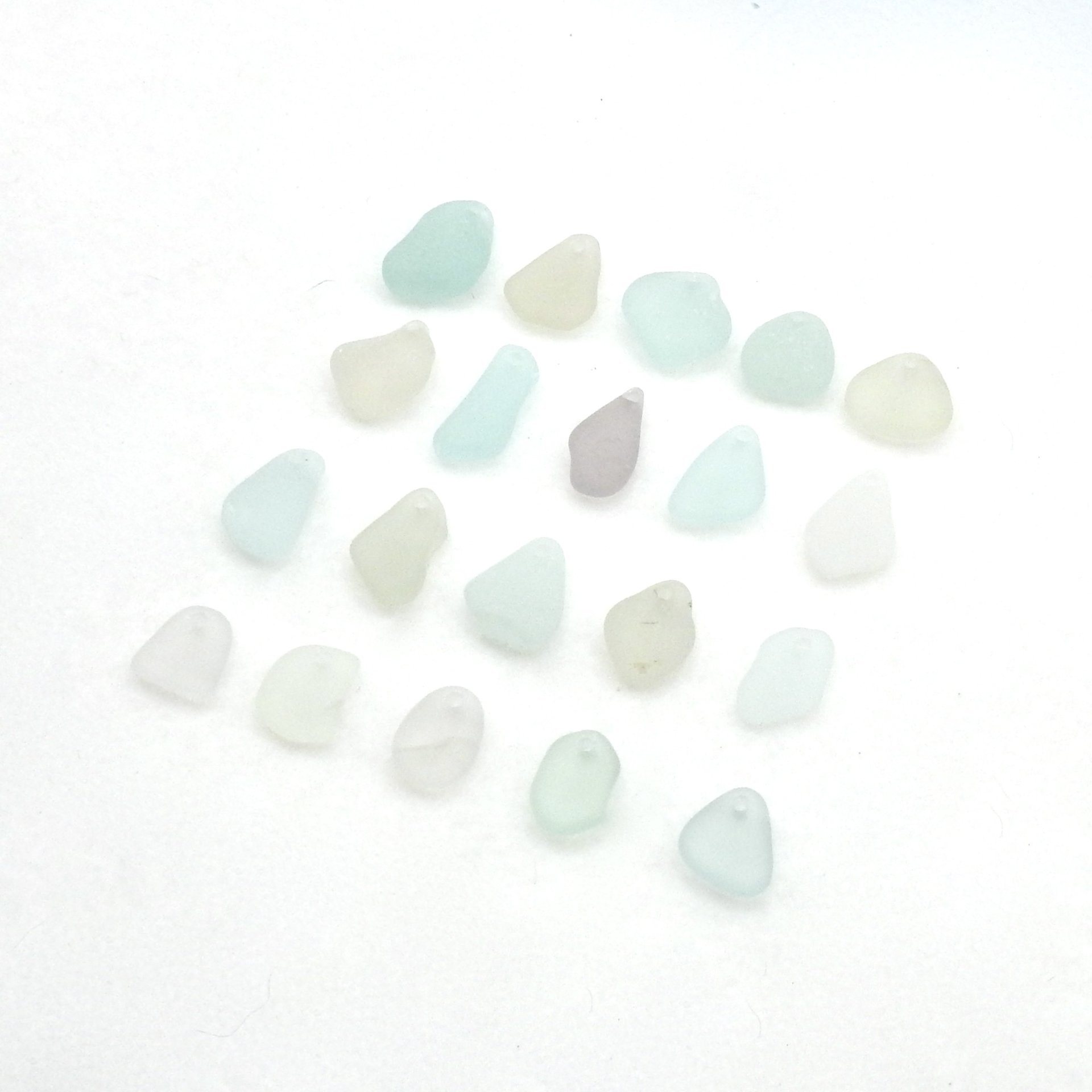 Real sea glass charms, set of 20, in light pastel colors with top drilled holes for jewelry making or other beach themed crafts.