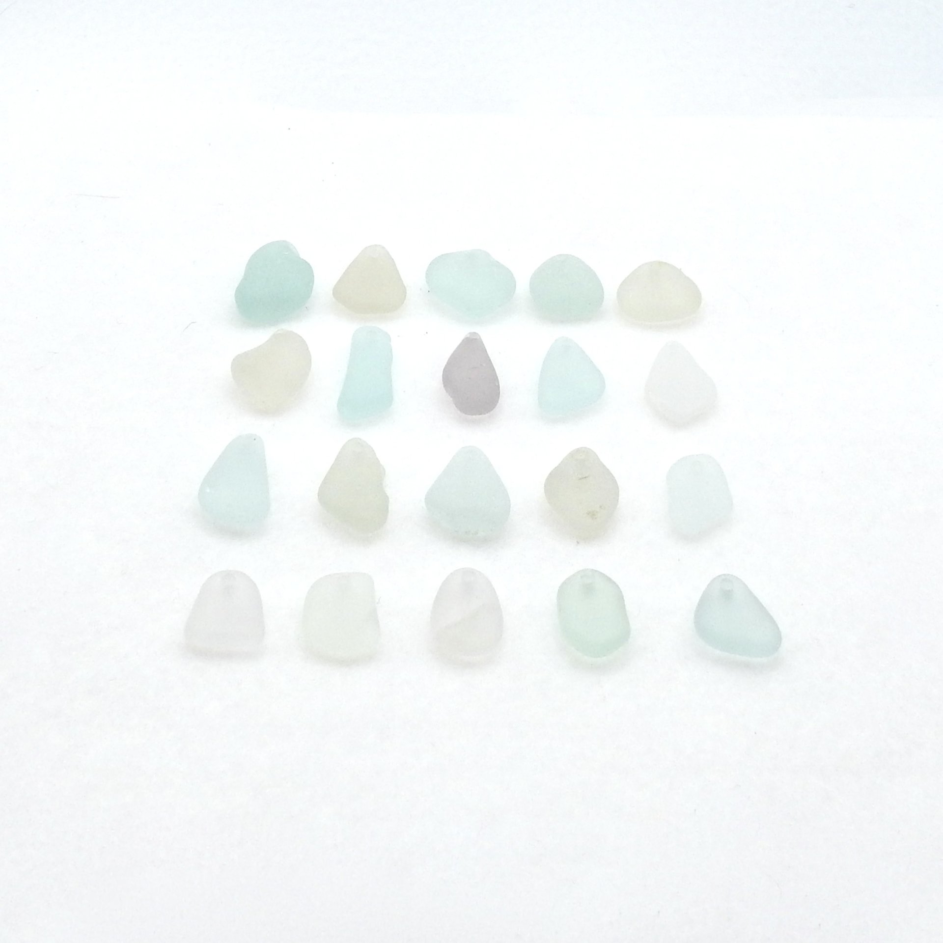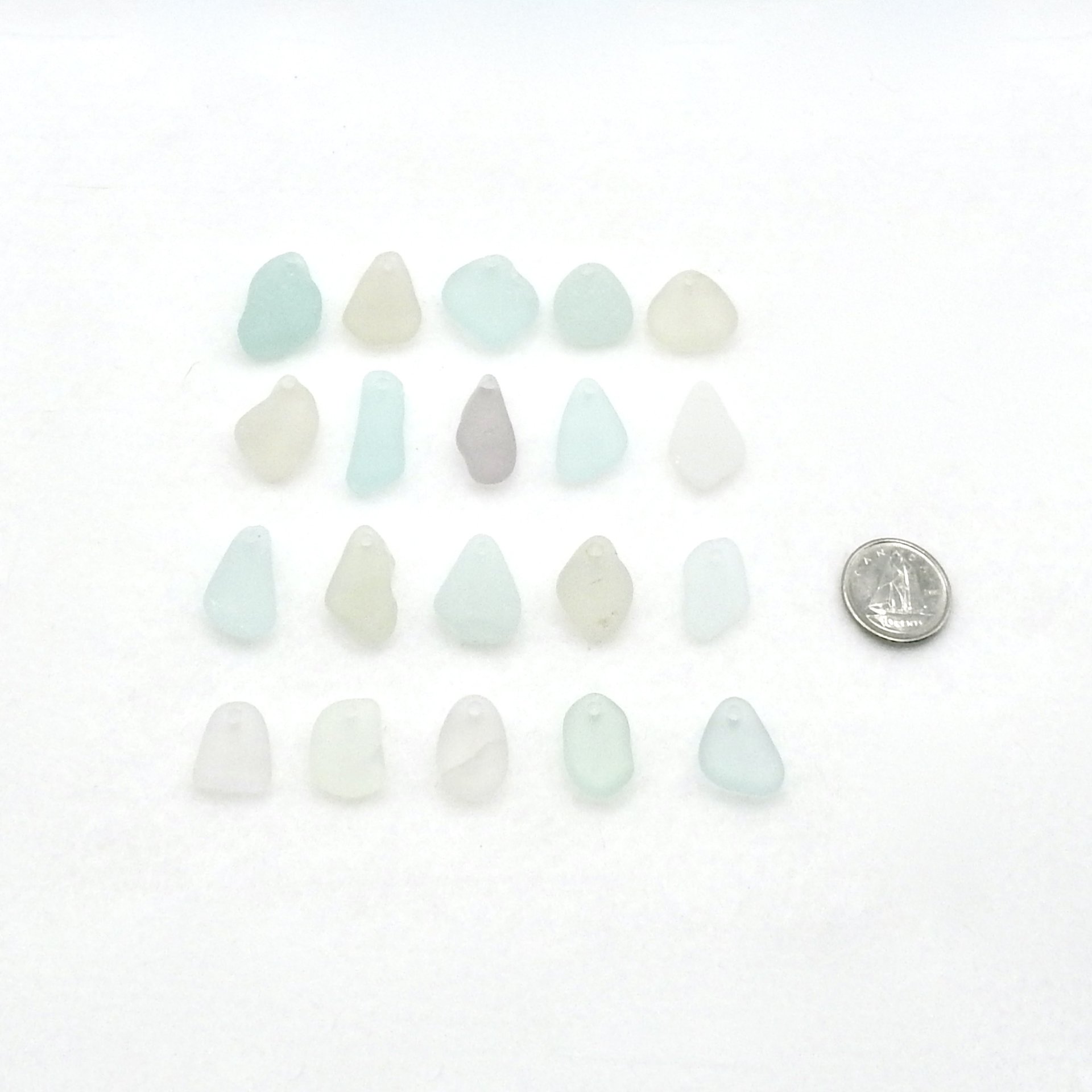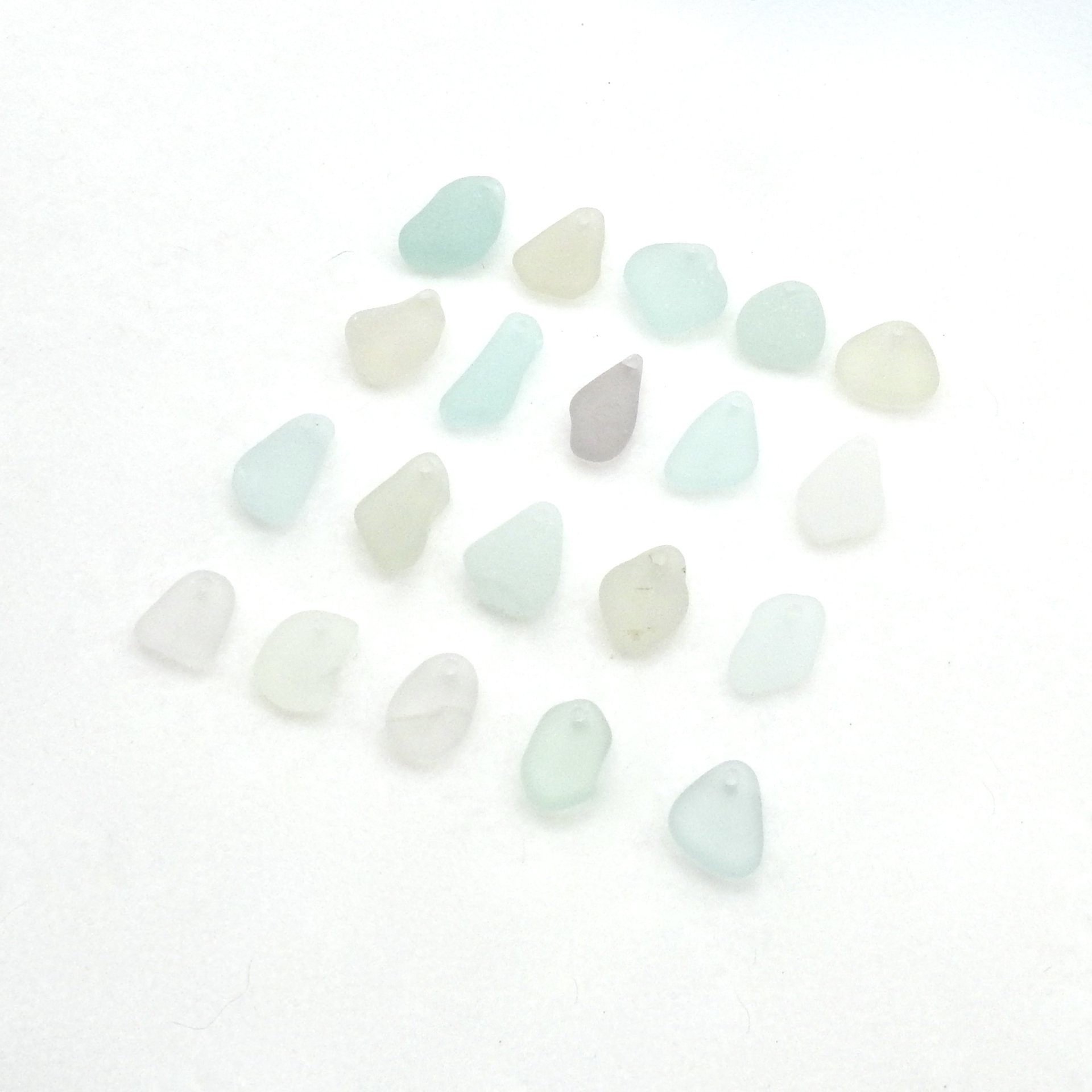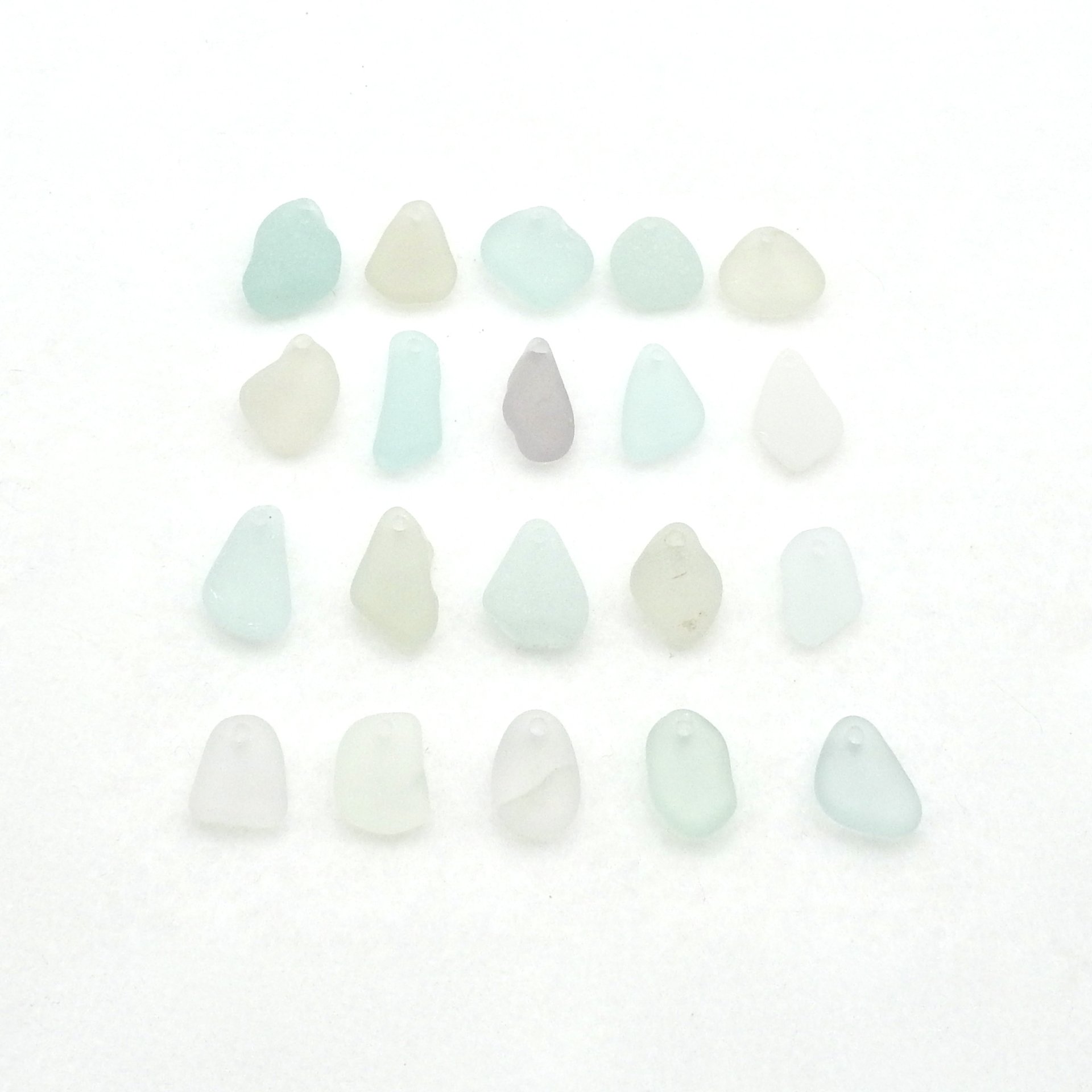 Real sea glass charms, set of 20, in light pastel colors with top drilled holes for jewelry making or other beach themed crafts.