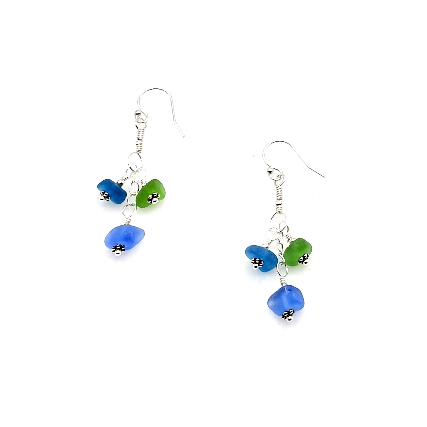 Sea Glass Earrings Tri Drop Handmade Jewelry for Women Girls