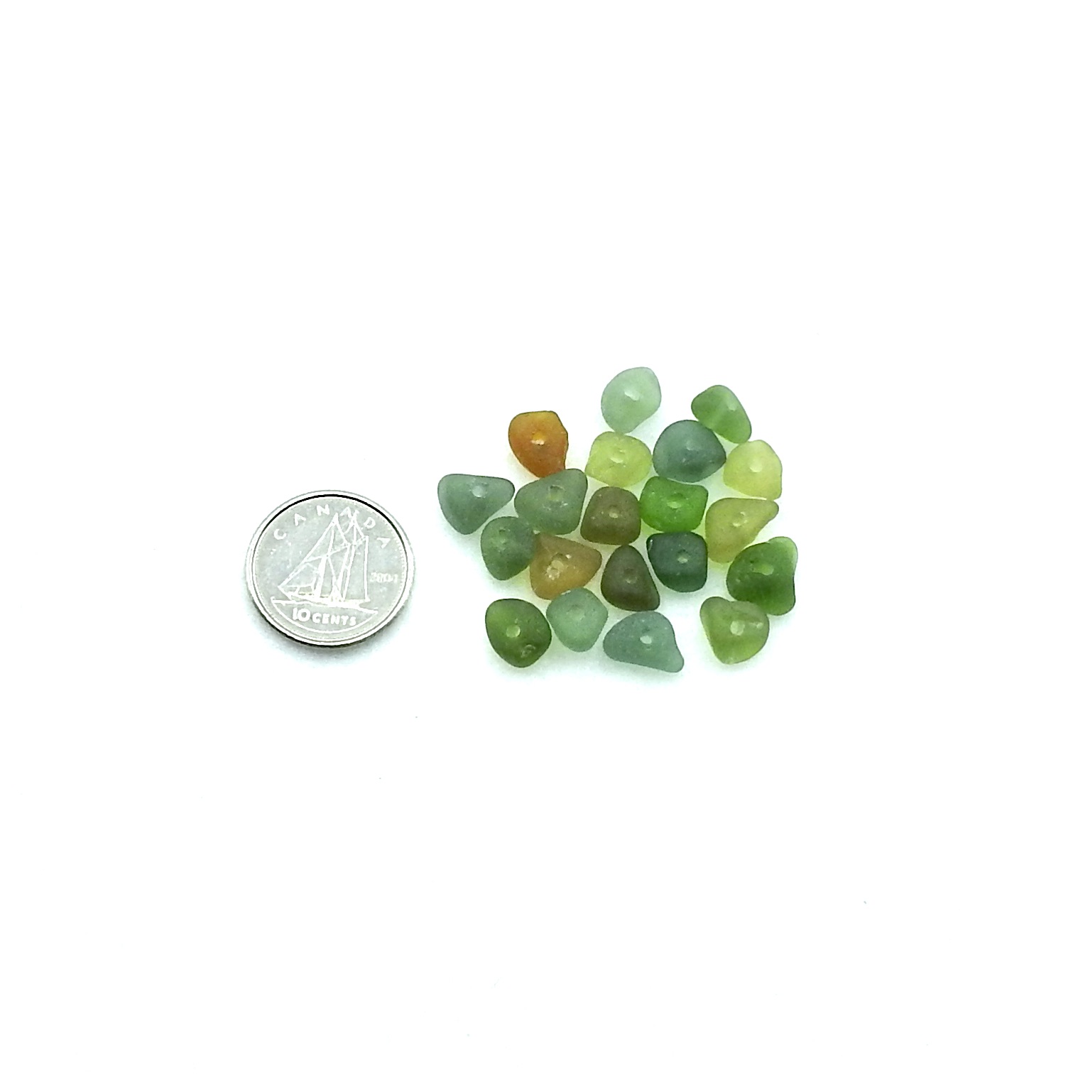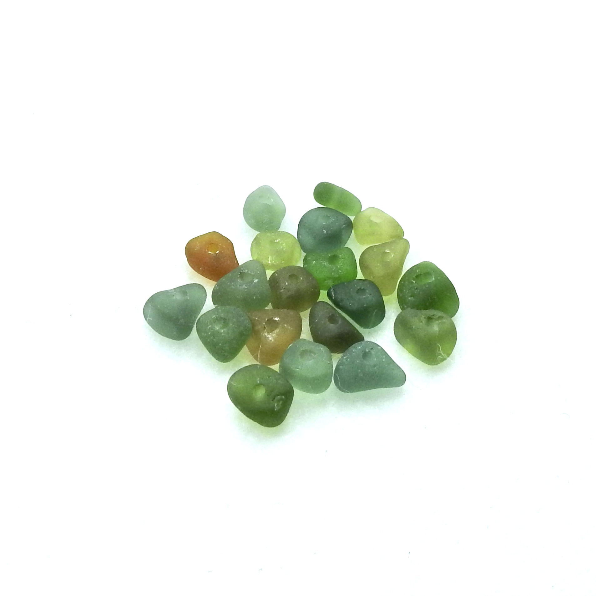 Tiny genuine sea glass beads, set of 20, in assorted colors with center drilled holes for jewelry making or other beach themed crafts.