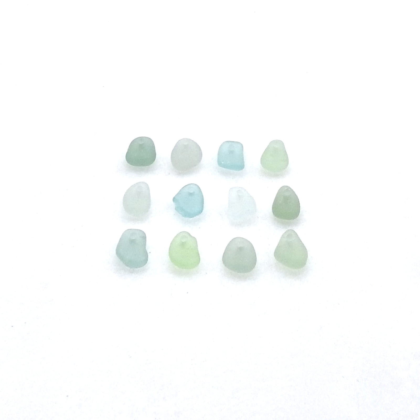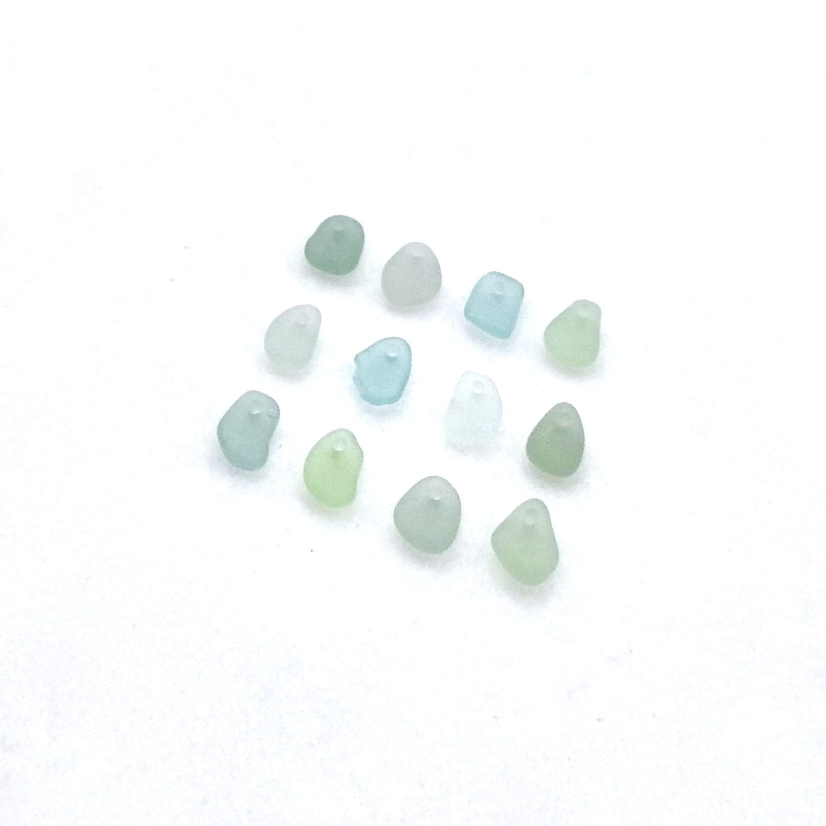Tiny authentic sea glass charms, set of 12 in light pastel colors with top drilled holes for jewelry making or other DIY crafts.